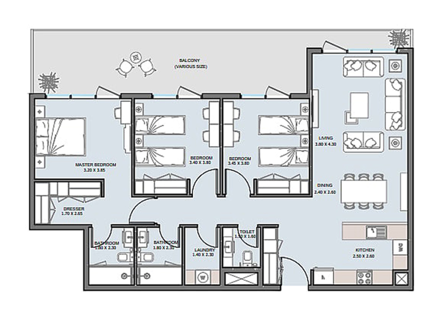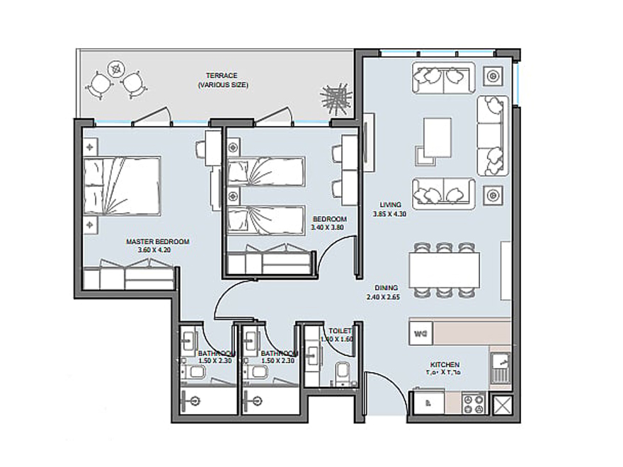 - Boyut: 1345 Sqft